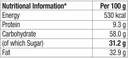 ENERGY 530 KCAL, PROTEIN 9.3 GM, CARBOHYDRATE 58.0 GM, FAT 32.9 GM