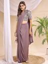 HERVALLY Ready to Wear Solid/Plain Bollywood Lycra Saree  (Purple)