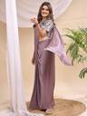 Step into timeless elegance with this stunning mauve saree featuring exquisite mirror work on the blouse. The blouse showcases intricate mirror embellishments on the sleeves and front, adding a sparkling charm to your look. Crafted from soft, flowing fabric, the saree drapes gracefully, enhanced with adjustable hook pleats for a perfect fit and comfort. Ideal for festive occasions, weddings, or parties, this saree blends traditional craftsmanship with modern convenience. Pair it with silver jewelry and a matching handbag for a complete glamorous ensemble.