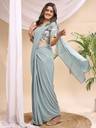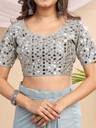 Step into timeless elegance with this stunning mauve saree featuring exquisite mirror work on the blouse. The blouse showcases intricate mirror embellishments on the sleeves and front, adding a sparkling charm to your look. Crafted from soft, flowing fabric, the saree drapes gracefully, enhanced with adjustable hook pleats for a perfect fit and comfort. Ideal for festive occasions, weddings, or parties, this saree blends traditional craftsmanship with modern convenience. Pair it with silver jewelry and a matching handbag for a complete glamorous ensemble.
