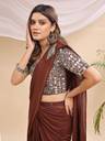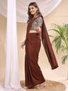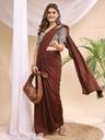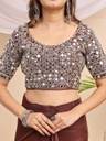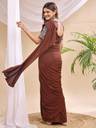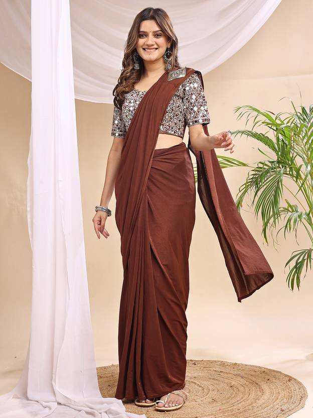 Step into timeless elegance with this stunning mauve saree featuring exquisite mirror work on the blouse. The blouse showcases intricate mirror embellishments on the sleeves and front, adding a sparkling charm to your look. Crafted from soft, flowing fabric, the saree drapes gracefully, enhanced with adjustable hook pleats for a perfect fit and comfort. Ideal for festive occasions, weddings, or parties, this saree blends traditional craftsmanship with modern convenience. Pair it with silver jewelry and a matching handbag for a complete glamorous ensemble.