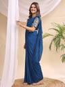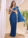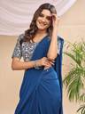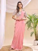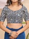 Step into timeless elegance with this stunning mauve saree featuring exquisite mirror work on the blouse. The blouse showcases intricate mirror embellishments on the sleeves and front, adding a sparkling charm to your look. Crafted from soft, flowing fabric, the saree drapes gracefully, enhanced with adjustable hook pleats for a perfect fit and comfort. Ideal for festive occasions, weddings, or parties, this saree blends traditional craftsmanship with modern convenience. Pair it with silver jewelry and a matching handbag for a complete glamorous ensemble.