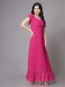 This solid Dress is designed by AAYU CREATION in beautiful pattern for casual , wedding for party occasion. The elegant short sleeves Dress is made of Georgette fabric which is considered to be one of the most soft and comfortable fabric. You can wear this for special occasions as well and look amazing. There might be slight variation in the actual color of the product due to different screen resolutions.