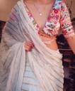 White Sequin Georgette Saree with Contrast Gold Lace Border & Matching Black Blouse – Party & Festive Wear