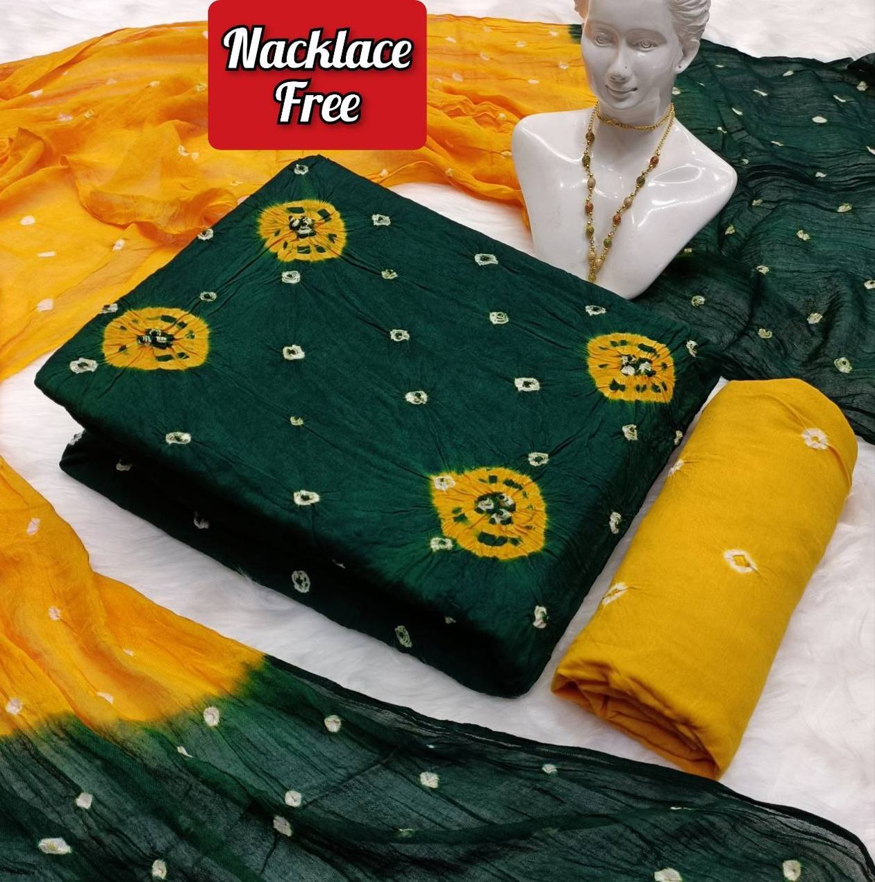 GREEN MADHUBALA DRESS SHC-1 UNSTITCHED SEMI STITCHED BANDHANI BANDHEJ