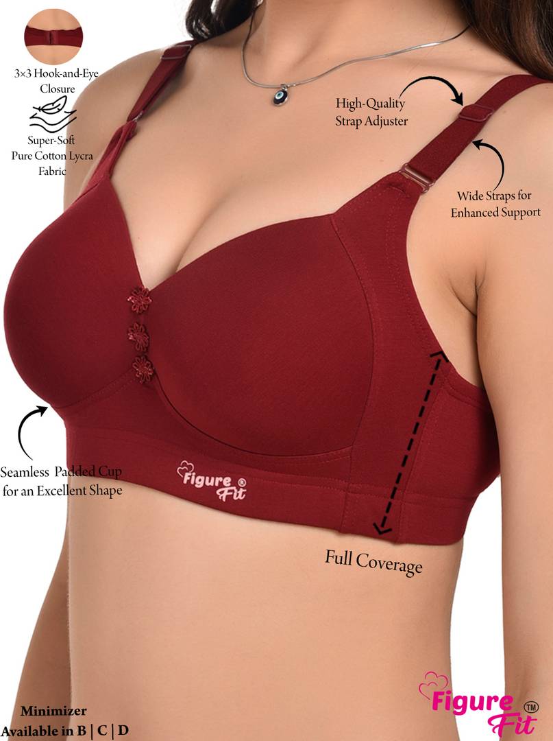 Hetiers women solid lingerie set with medium padded t-shirt bra and hipster panty, detachable straps, seamed, stretchable, high-quality under elastic crafted from super soft and breathable cotton elastane fabric to provide smooth invisible silhouette under fitted clothing.