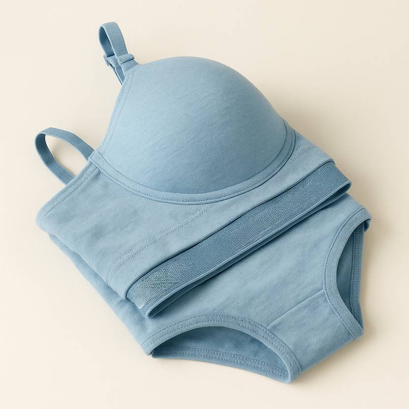 HETIERS Bra & Panty Set Solid Light Blue Lingerie Set