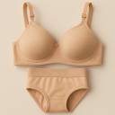 HETIERS Bra & Panty Set Solid Beige Lingerie Set