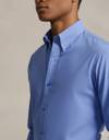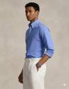 HETIERS men slim fit solid cotton chambray casual shirt with spread collar, full sleeves and button placket