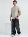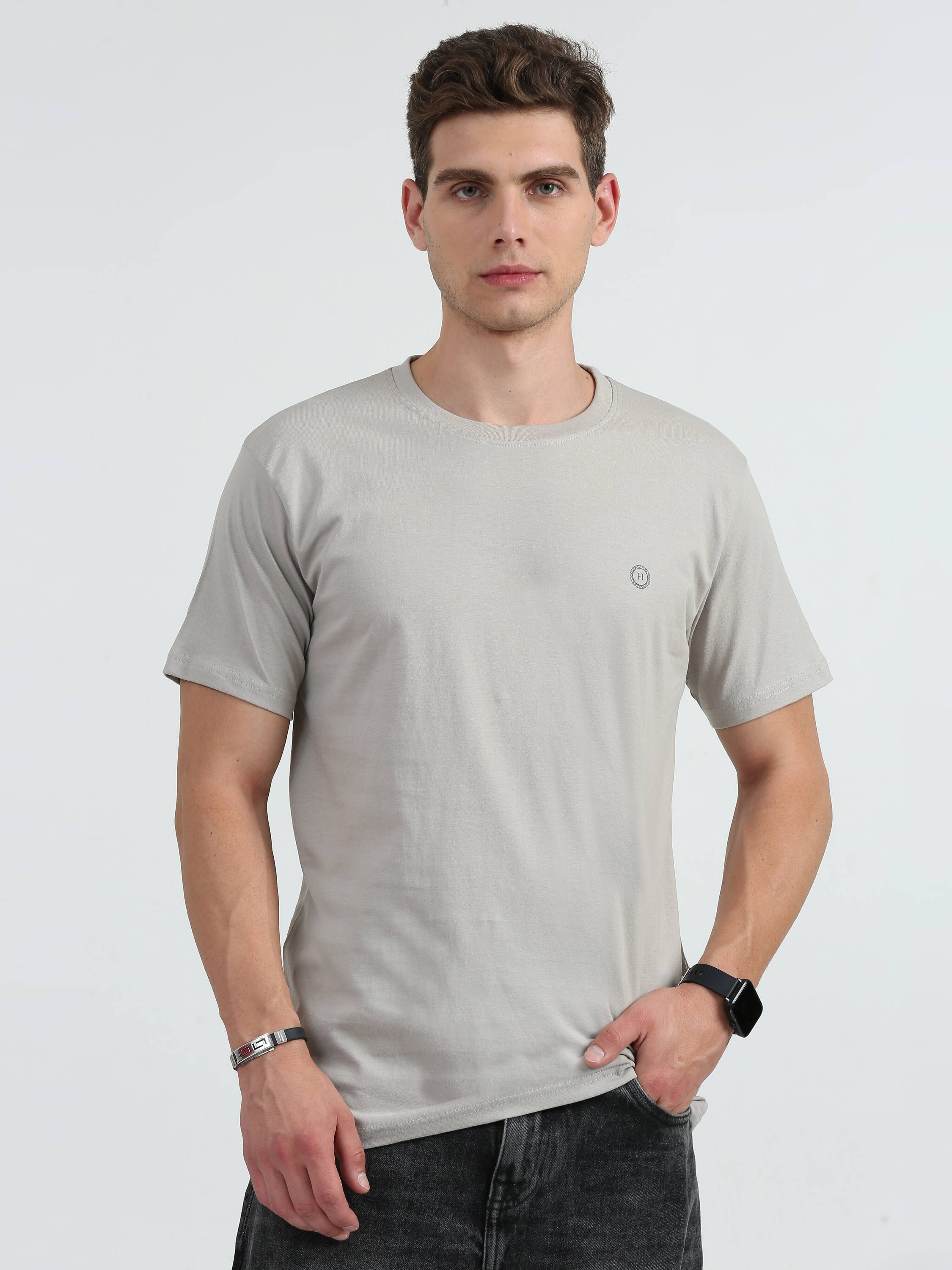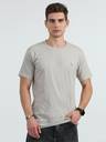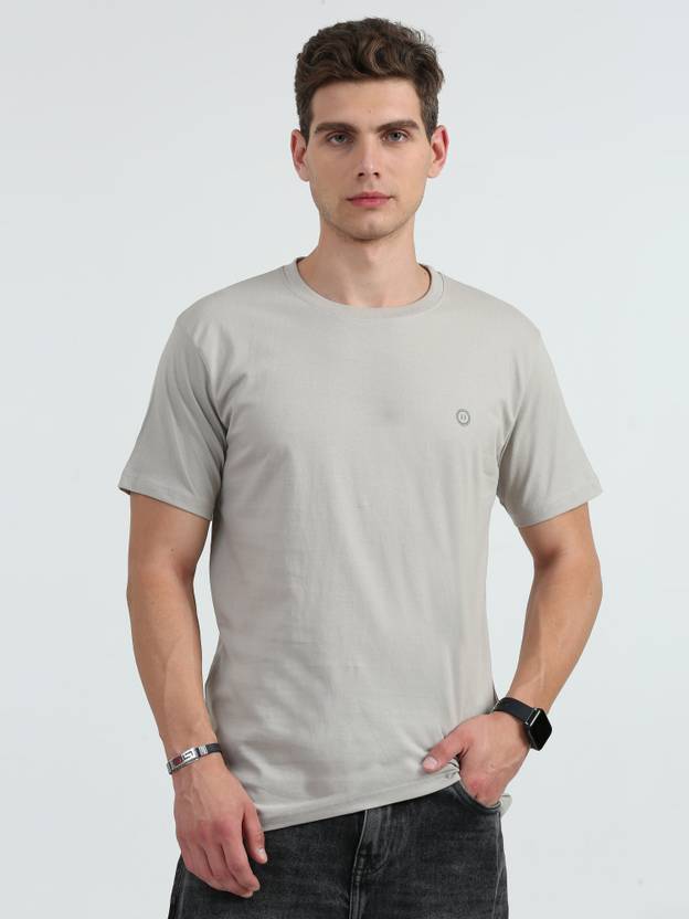 HETIRES Men Solid Crew Neck Cotton Blend Grey T-Shirt