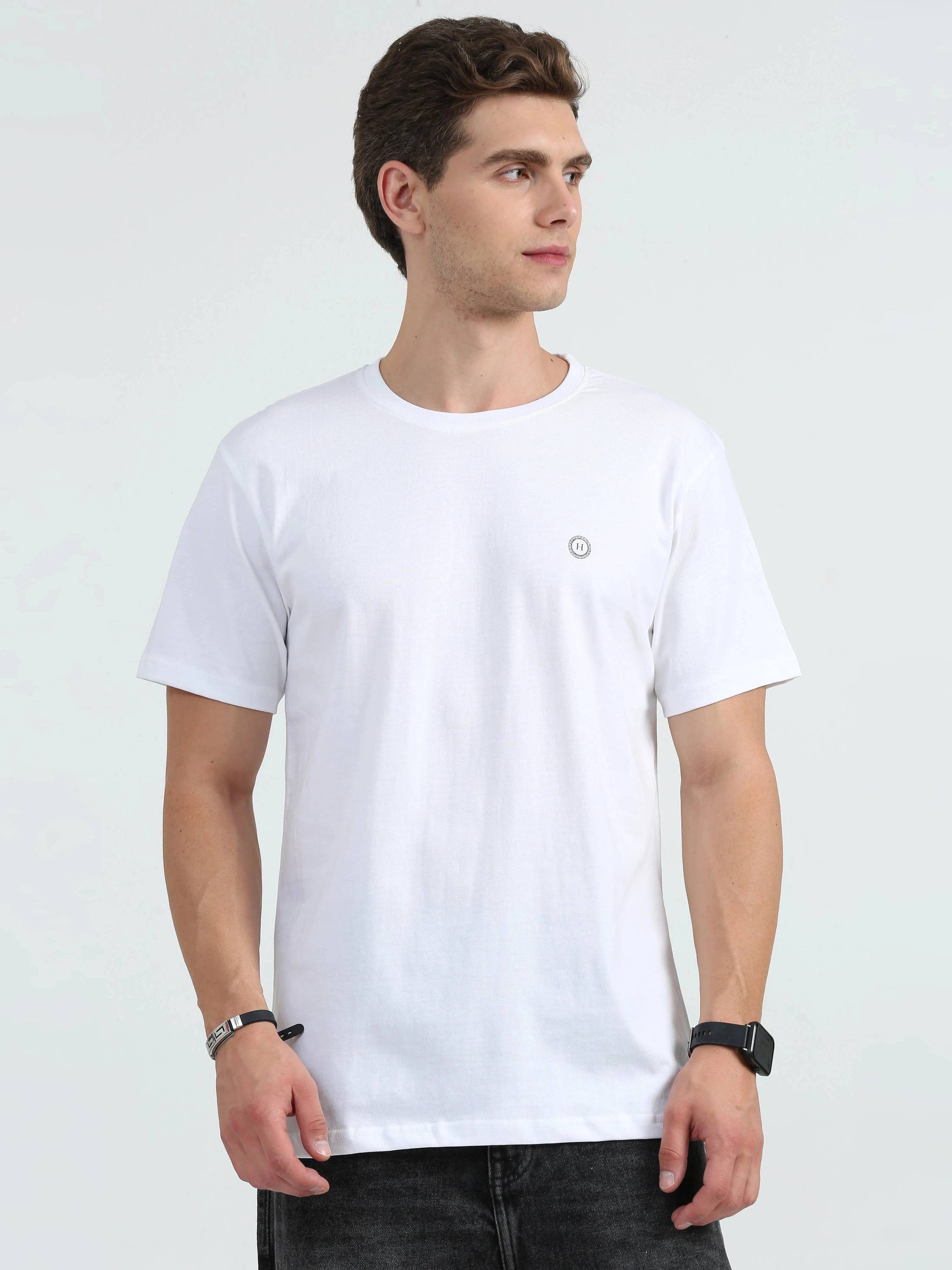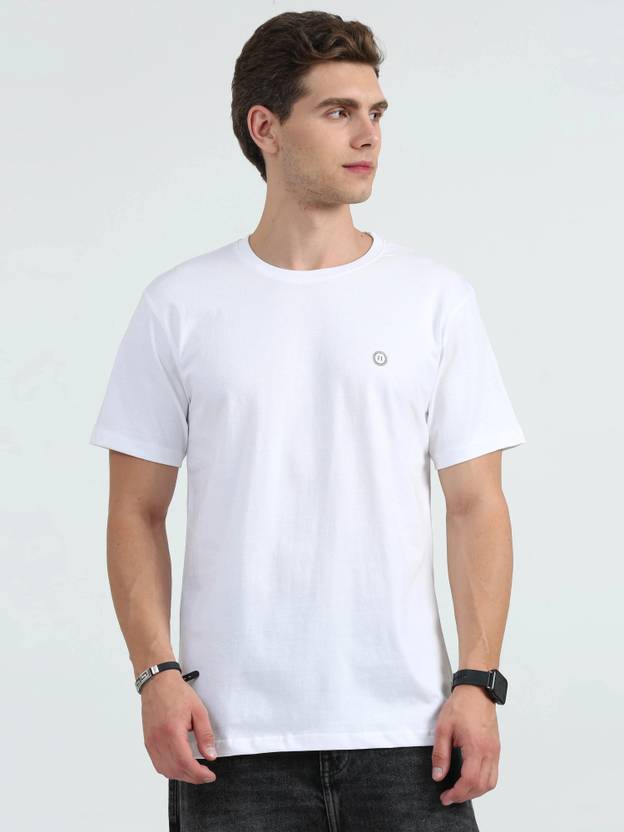 HETIRES Solid Men Crew Neck White T-Shirt