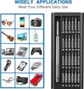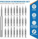 | Key Features | - All in One Tool Kits?Suitable for quartz watch, regular household appliances such as cameras, radios, computers, mobile phones, drones, etc., meeting the most daily repair needs., Different Models Meet Different Daily Needs?Models: PH000, PH00, PH0, PH1, PH2, Y1, P2, P5, SL4.0, SL3.0, SL2.0, SL1.5, TORX T8H, TORX T6H, TORX T5H, TORX T4, TORX T3, TORX T2, 2.3, U2.6, H2.0, H1.5, TORX T15H, TORX T10H., 24 Pieces Precision Bits?This screwdriver kit use a computer numerical control process for high accuracy (Tolerance: ±0.01mm), fit well to tiny screws of your electronics, including Philips, Flathead, Torx, Security Torx, Pentalobe, Triangle, Hexagons, Tri-point, Spanner meet ANSI Standard., Exquisite Design?Anti-rust aluminum alloy screwdriver handle, smooth arc edge for comfortable hand feeling.Sandblasted surface anodes treatment, anti-sweat, and anti-corrosion. You will enjoy it during using., Luxury Plastic Storage Case?Comes with an Plastic storage box for easy carry and store, great for boyfriend and father gifts.
