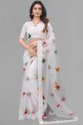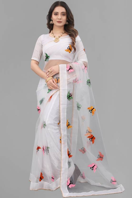 The Bollywood-type netted saree from Heyinz Clothing is elegant and stylish; it has a neat drape that accents the silhouette of the body. The butterfly pattern applique work in contrasting colours and decorative beads on the borders adds a chic, sophisticated look.
