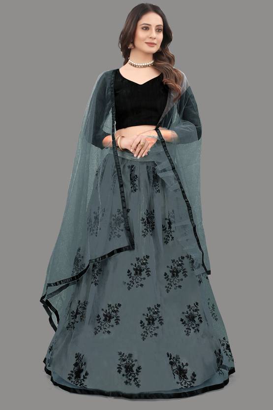 Heyinz Clothing Embroidered Semi Stitched Lehenga Choli (Grey)