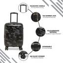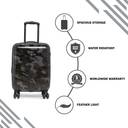 Heys Black Camo be a fashionable globetrotter with the Heys new Fashion Spinners® with print designs that reflect the latest runway trends. This sophisticated new style is the next generation of Heys popular 'Fashion Spinners®' luggage - it's been completely redesigned from the ground up with all-new features! Fully lined interior with a stylish patterned fabric, with multiple zippered pockets, Gel cushioned top and side handles. Zipper-released expansion system allows for an extra 20% in packing capacity.