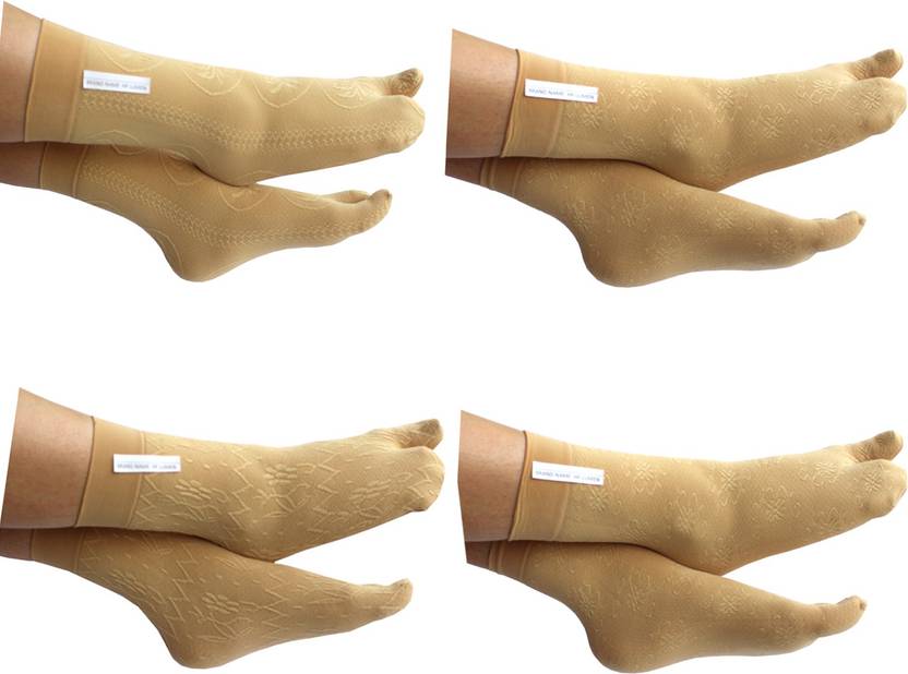 HF LUMEN Skin Color Self Design Cotton Mix Feather Socks For Women Mid-Calf/Crew (Pack of 4)