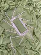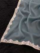 Gerogette Simmer Fabric Full Solid\ Plain With Small Moti Lace Side Border New Trending Saree