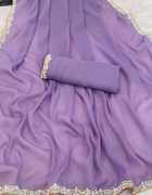 Solid/Plain Bollywood Georgette Saree (Purple)