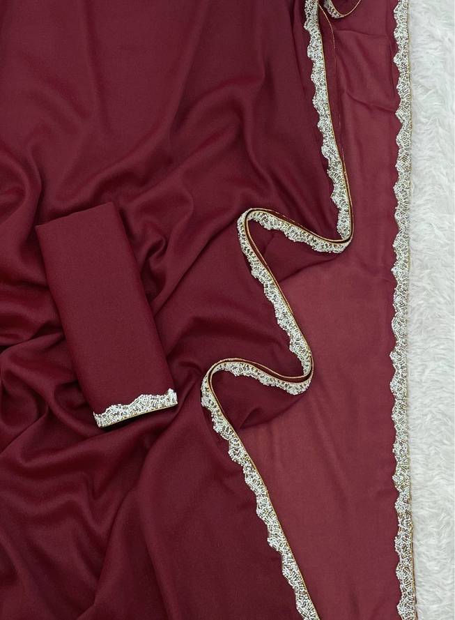 Solid/Plain Bollywood Georgette Saree (Maroon)