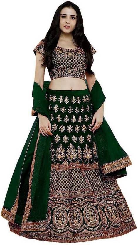 Embroidered Semi Stitched Lehenga Choli (Green)