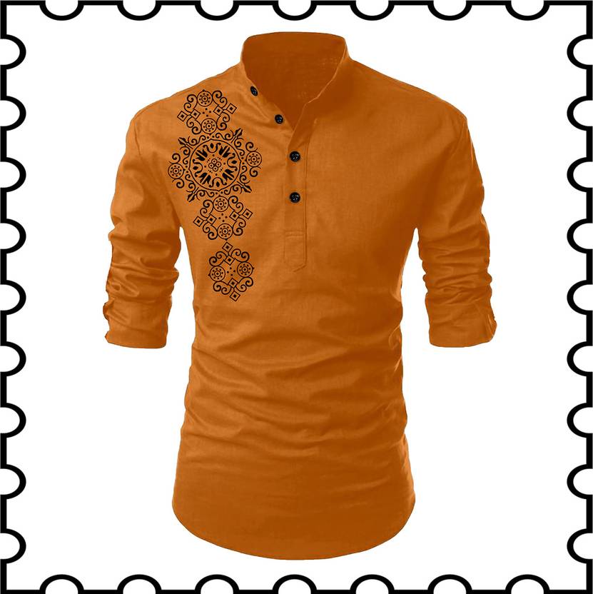 SWAMOTIFASHION Men Printed Straight Kurta (Brown)
