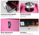 Transform any party or event into a magical experience with HG ENTERPRISES INDIA professional-grade cotton candy machine. Featuring a generous 52cm stainless steel bowl and powerful 1000W motor, this commercial-quality machine operates on 220V/50Hz power to produce fluffy, delicious cotton candy at an impressive rate of 2-4 servings per minute. The pink-coloured unit comes equipped with convenient features including a practical 3-bin storage drawer, stainless steel scoop, and spare motor drive belts. The user-friendly control panel places power switch, heat controller and volt meter right at your fingertips. Simply turn on the machine, allow it to heat up, add your cotton candy sugar, and start creating wonderful candy floss treats. The thoughtfully designed safety mechanism ensures the bowl must be properly secured before operation. Built for both efficiency and durability, this machine makes creating professional-quality cotton candy simple and enjoyable. Perfect for parties, events, small businesses, or anyone looking to bring the joy of freshly-made cotton candy to their celebrations.