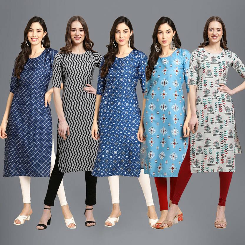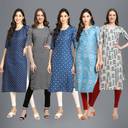 1 Stop Fashion Pack of 5 Women Printed Crepe Straight Kurta (Multicolor)