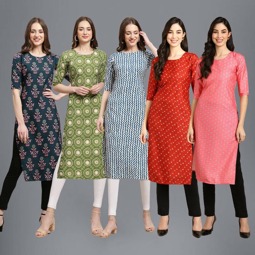 1 Stop Fashion Pack of 5 Women Printed Crepe Straight Kurta  (Multicolor)