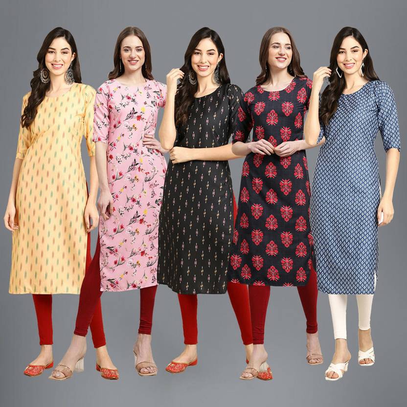 1 Stop Fashion Pack of 5 Women Printed Crepe Straight Kurta (Multicolor)
