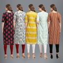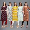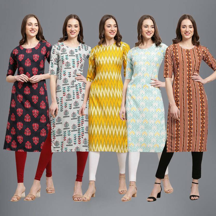 1 Stop Fashion Pack of 5 Women Printed Crepe Straight Kurta  (Multicolor)