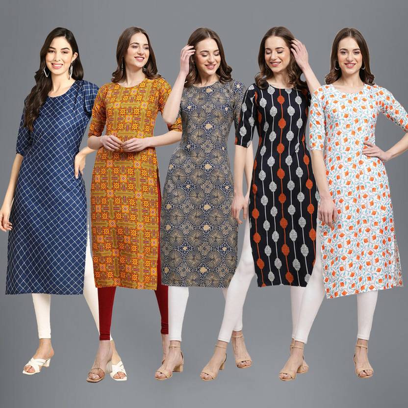 1 Stop Fashion Pack of 5 Women Printed Crepe Straight Kurta  (Multicolor)