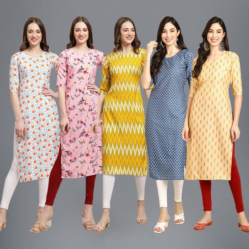 1 Stop Fashion Pack of 5 Women Printed Crepe Straight Kurta (Multicolor)