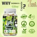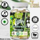 Giloy Capsules are empowered with the numerous health benefits of the Ayurvedic wonder-herb Giloy (Guduchi), also known as Tinospora cordifolia. Giloy being an immunomodulator herb enhances the immunity of the body by stimulating the white blood cells which are responsible for the prevention of infections. Giloy herb is also a powerhouse of antioxidants that are plant compounds and can fight off free radicals and prevent oxidative damage to cells. Giloy also has anti-allergic, anti-viral, antibacterial properties and helps in controlling cold, cough, fever and allergies. It helps in maintaining respiratory, joints and gut health. Giloy (Guduchi) is an Ayurvedic herb that has been used and advocated in Indian medicine for ages. In Sanskrit, Giloy is known as Amrita', which literally translates to ‘the root of immortality', because of its abundant medicinal properties. It is described as one of the Medhya Rasayanas (mental rejuvenation) in the Charak Samhita. The Rasayana property bestows longevity, enhances memory, boosts immunity, increases the body resistance against infections and improves general health. It also has antioxidant, anti-inflammatory, anti-pyretic, anti-arthritic, anti-allergic, anti-diabetic and wound healing properties.