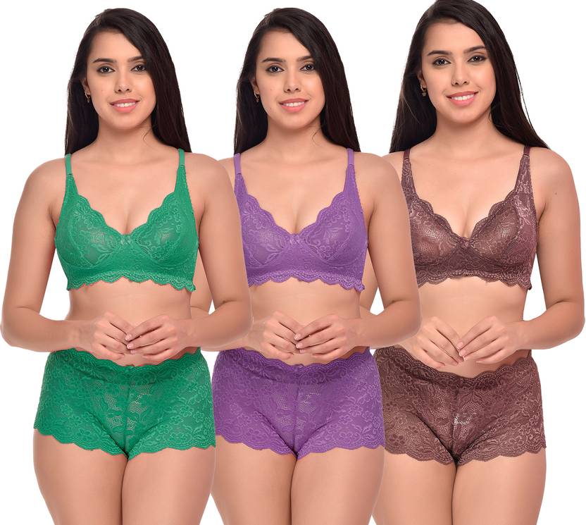 aamarsh Bra & Panty Set Self Design Green, Purple, Maroon Lingerie Set