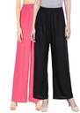 AARFA Pack of 2 Women Regular Fit Black, Pink Viscose Rayon Trousers