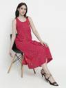 aayusika Pink Polka Dot Printed Cotton Flex & Hand Work Flared Dress