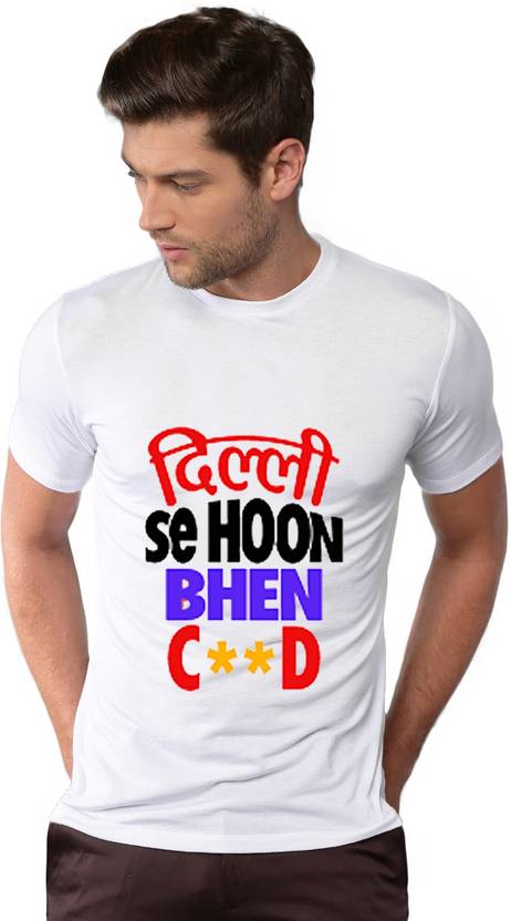 Men Printed Round Neck Polyester White T-Shirt