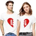 Pack of 2 Couple Typography Round Neck Polyester White T-Shirt