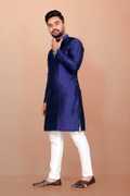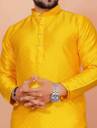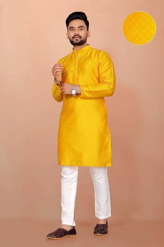 ADEE पुरुषों के लिए सेल्फ डिज़ाइन स्ट्रेट कुर्ता (पीला)