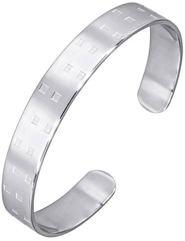 ADF-Silver Stainless Steel Plain Openable Adjustable Free Size Big Strong Heavy Bracelet for Girls & Boys.