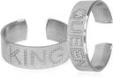 Silver Couple Matching King Queen Name Engraved Design Open-Cuff Finger Ring Set