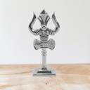HHRI0304-101 Metal Shiv,mahadev Trishul,trident with Damaru Double Side God Stand for Gifting, Home and Office Table, and Car Dashboard Accessories Small Size (7 X 2.5 Cm) Silver Color Pack of 1