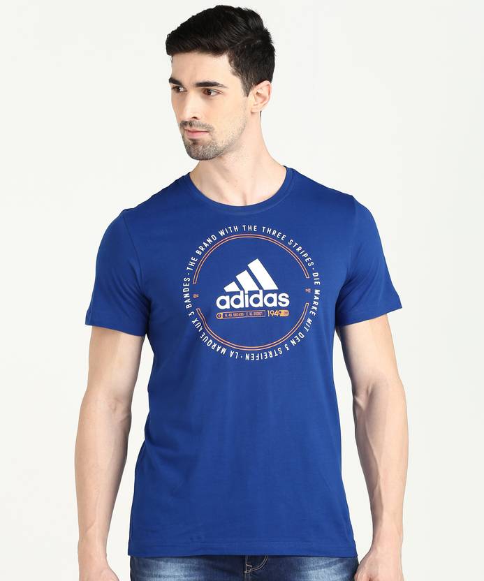 एडिडास पुरुषों के लिए गोल गला प्रिंटेड नीला टी-शर्ट