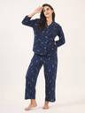 Women Night Suit Set Blue Printed