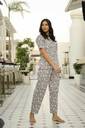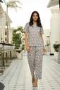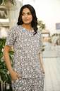 Women Top & Pyjama Set Grey Printed