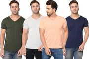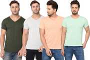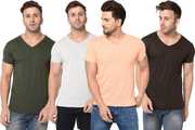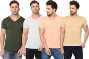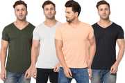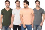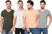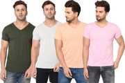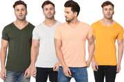 Pack of 4 V neck Combo T-shirts Multicolor Men Solid V Neck Cotton Blend Multicolor T-Shirt