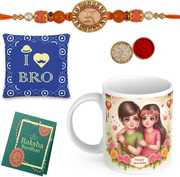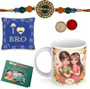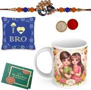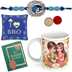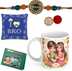 Designer Rakhi, Best Brother Coffee Mug, Cushion, Greeting Card, Chawal Roli Pack
