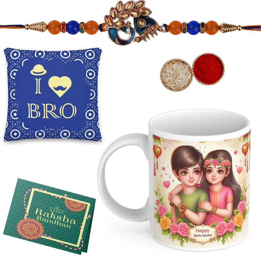 Cushion, Rakhi, Mug, Greeting Card, Chawal Roli Pack