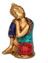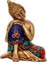 Aesthetic Decors Buddha Resting With Stone Work डेकोरेटिव शोपीस - 10.2 cm (गोल्ड प्लेटेड, बहुरंगी)