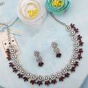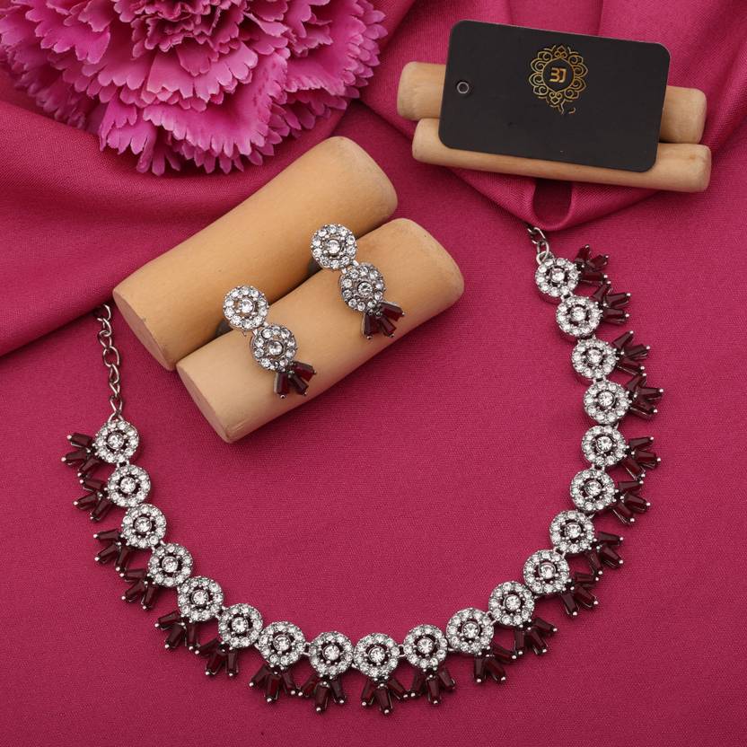 About Product :- Colour : Maroon, White and Silver, Material : Brass, Plating : Silver Plated. In The Box :- Pack of 1 Silver Plated , Black And white American Diamond Jewellery Set Necklace + 1 Pair of Earrings. Dimension :- Necklace Length - 20.32 cm, Necklace Width - 15.24 cm| Earring Length - 3.08 cm, Earring Width - 2.54 cm. Material : Made With Pure Brass. This jewellery set consists of a necklace and a pair of earrings. Silver-Plated Necklace, has AD studded detail, secured with a S Hook closure. A pair of matching Stud Earrings, each secured with a Post and Back Closure. Our expert eye for craftsmanship, rarity, and quality can be seen through all of our flattering designs. This breathtaking necklace with earrings jewelry set is great for making a fashion statement. It will bring you a lot of compliments. Traditional necklaces add a hint of raw ethnic beauty to any look. Representing a classic fusion of exquisite craftsmanship and feminine elegance, this set will definitely be a treasured inclusion in every woman's jewelry collection. Best gifts for mother, sister, wife, and girlfriend. Features: Comfortable and lightweight Non-allergic to skin Beautifully crafted for a nice look Our Jewelry is designed to enhance inner beauty and confidence to offers an effortless complement to elegant outfits. This is a must-have design that can be worn on special occasions to boost up your style factor and enhance the beauty of yours.